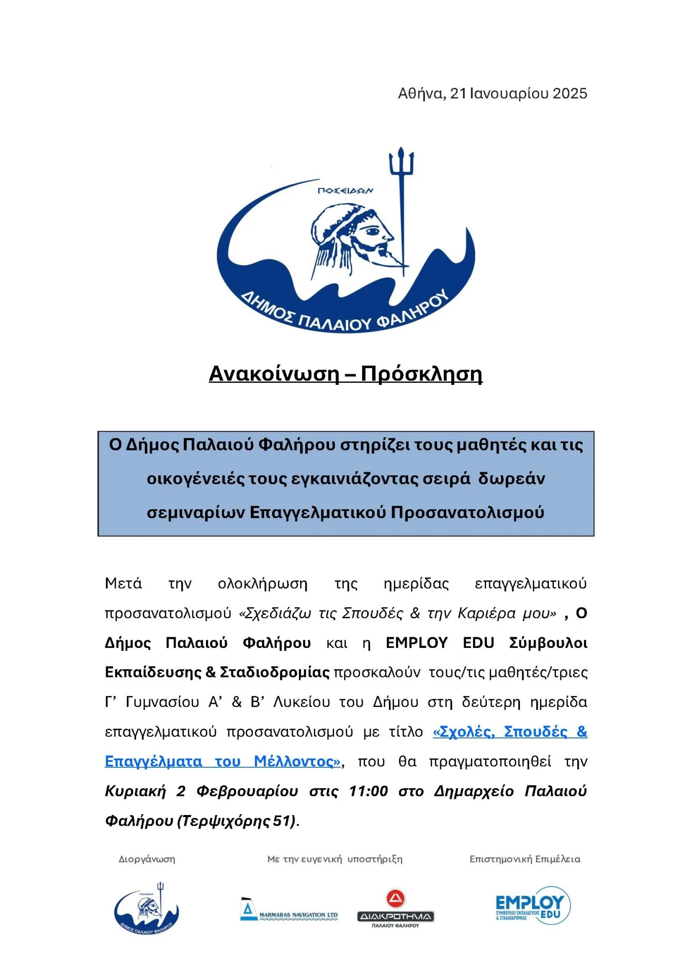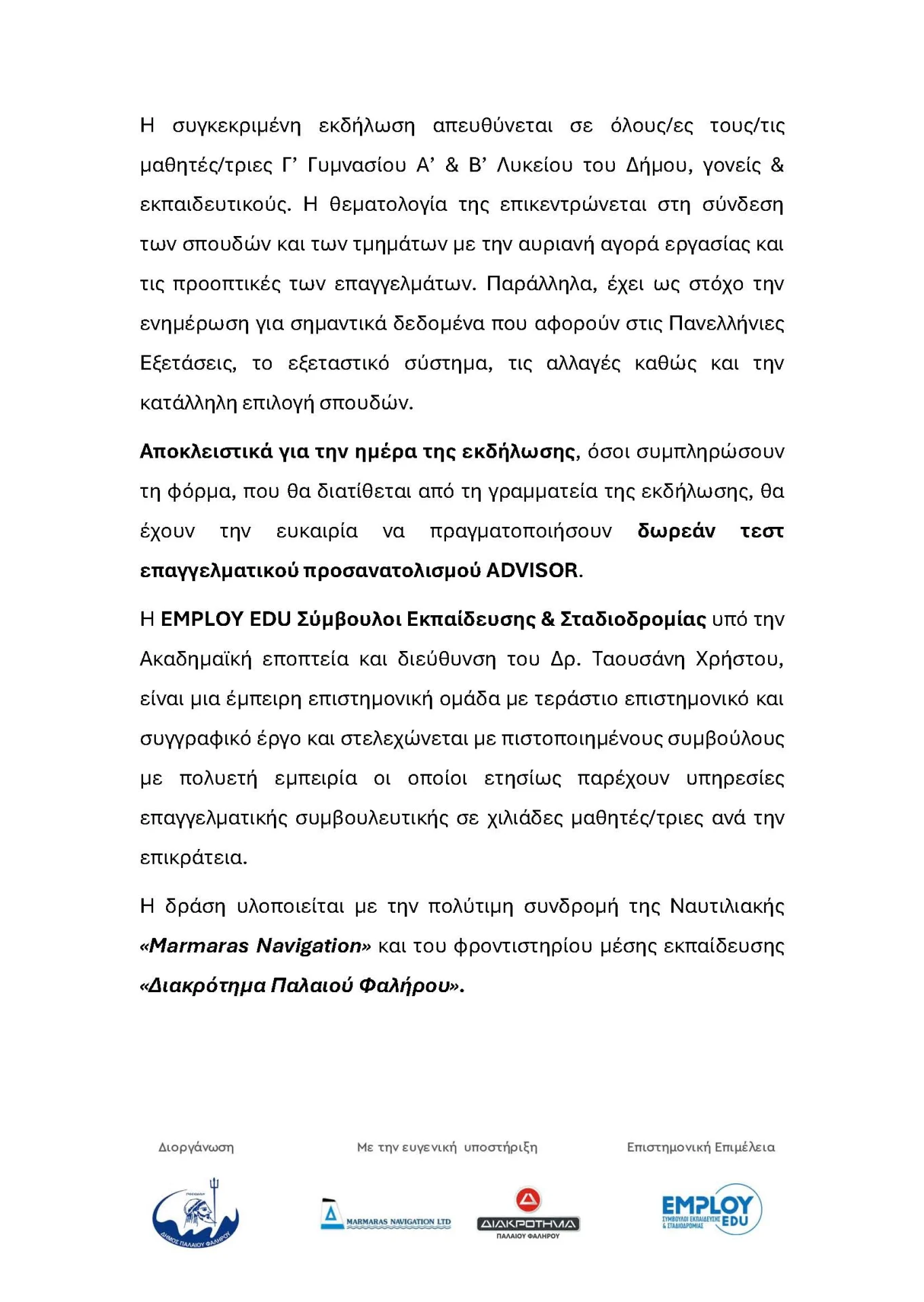 Hμερίδα επαγγελματικού προσανατολισμού «Σχολές, Σπουδές & Επαγγέλματα του Μέλλοντος»