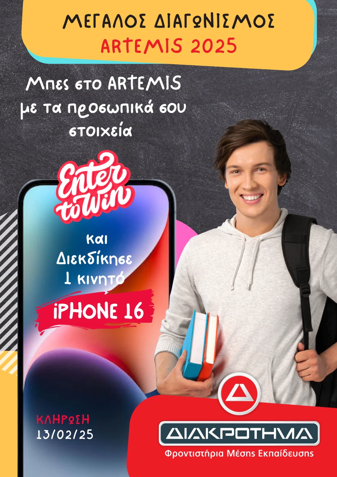 Ο μεγάλος ΔΙΑΓΩΝΙΣΜΟΣ ΔΙΑΚΡΟΤΗΜΑ ARTEMIS 2025 ολοκληρώθηκε με επιτυχία και μία τυχερή μαθήτρια μας κέρδισε το νέο IPHONE 16.