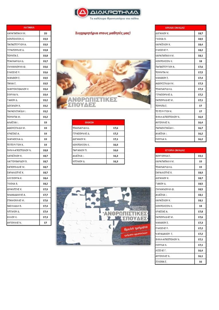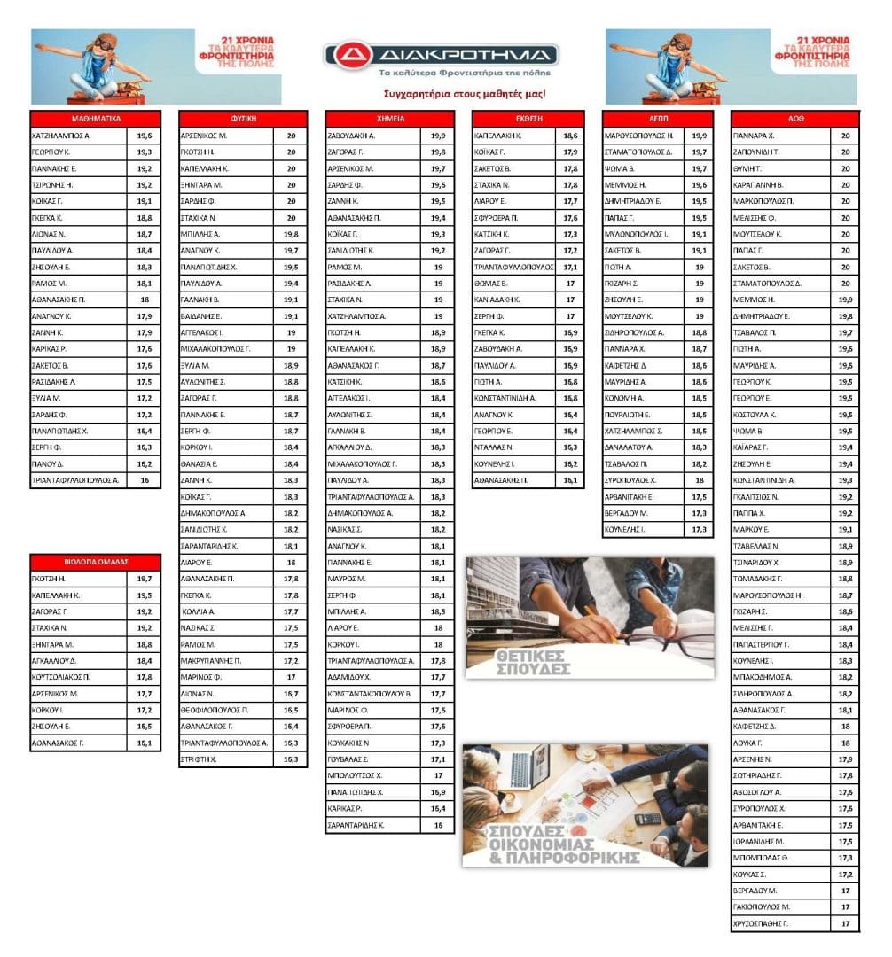 Η προσπάθεια ανταμείβεται. Δείτε τα αποτελέσματα που ανοίγουν τον δρόμο για την εισαγωγή στην Τριτοβάθμια Εκπαίδευση.